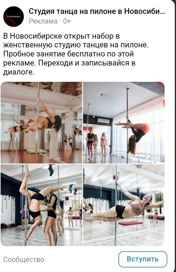Делюсь новым кейсом по продвижению школы танцев на пилоне в Каменногорске